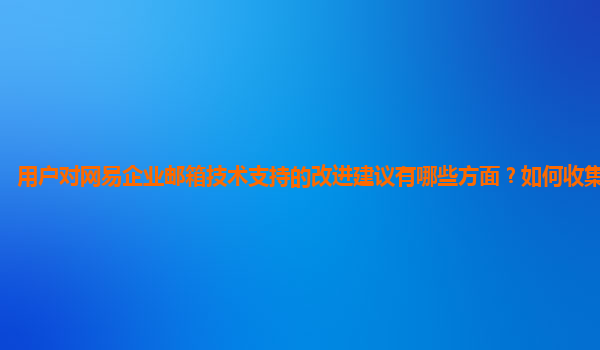 如何改进网易企业邮箱的技术支持服务:用户建议与收集处理方案 一、网易企业邮箱的优势与使用体验 网易企业邮箱作为国内知名的企业级邮箱服务提供商,凭借其强大的技术支持和丰富的功能,赢得了广泛用户的...