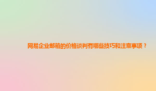 2024-12-01以网易企业邮箱的价格谈判有哪些技巧和注意事项? 在现代企业中,邮箱已经成为了日常沟通和业务运作的重要工具,而企业邮箱作为专业的电子邮件服务平台,逐渐成为了企业数字化管理中不可或缺的一部分。网易企业邮箱...