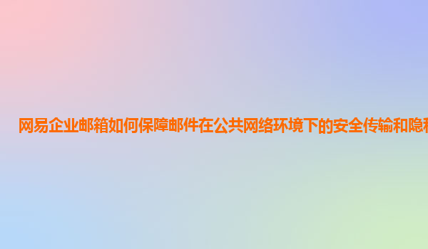 2024-12-01网易企业邮箱如何保障邮件在公共网络环境下的安全传输和隐私保护 随着互联网技术的不断发展,电子邮件已经成为日常工作和商务沟通中不可或缺的重要工具。然而,在公共网络环境下,如何确保邮件的安全传输和用户的隐...