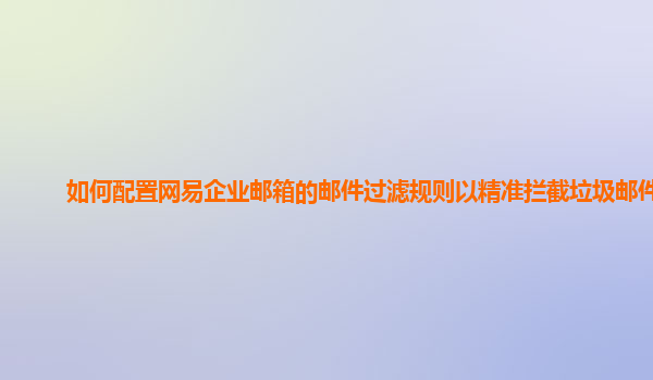 2024-11-30如何配置网易企业邮箱的邮件过滤规则以精准拦截垃圾邮件 随着信息化社会的快速发展,企业邮箱作为重要的工作工具,越来越受到各大公司和个人的重视。然而,随之而来的垃圾邮件问题,也成了企业邮件管理中的一大难题...