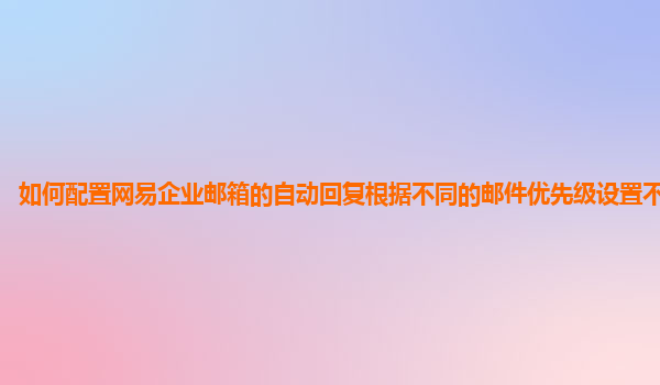 2024-11-30如何配置网易企业邮箱的自动回复,根据不同的邮件优先级设置不同内容 在现代企业中,电子邮件已经成为日常沟通的重要工具。网易企业邮箱凭借其稳定性、安全性和强大的功能,已经成为了众多企业的首选。然而,随着工...