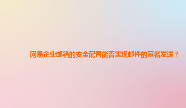 2024-11-30网易企业邮箱安全配置与匿名发送功能分析网易企业邮箱的基本功能与优势网易企业邮箱是一款功能强大的企业级电子邮件解决方案,广泛应用于各类企业和组织。它不仅提供高效的邮件收发服务,还具有强大的安全保护措施。...