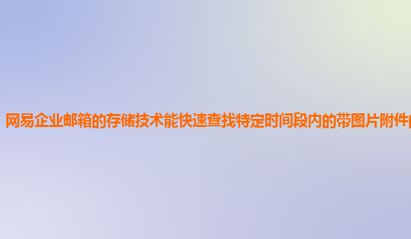 2024-11-29网易企业邮箱的存储技术能快速查找特定时间段内的带图片附件的邮件吗? 随着企业信息化进程的不断推进,企业对电子邮件的需求和依赖越来越强,特别是在业务沟通中,邮件附件,尤其是带图片附件的邮件,成为了重要的...