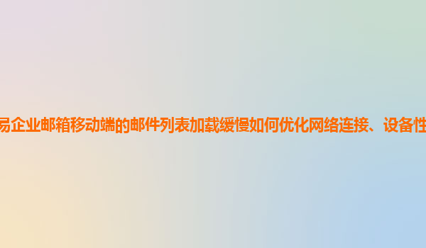 2024-11-29网易企业邮箱移动端邮件列表加载缓慢的优化策略 网易企业邮箱作为一款专业的企业级电子邮件服务平台,凭借其强大的功能、稳定的服务和便捷的管理后台,已广泛应用于各类企业中。然而,部分用户在使用网易企业邮箱移...