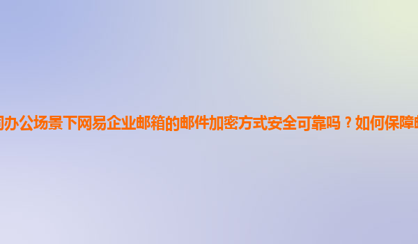 2024-11-29协同办公场景下网易企业邮箱的邮件加密方式安全可靠吗?如何保障邮件安全和隐私? 随着数字化办公的普及,企业在日常工作中逐渐依赖于电子邮件这一沟通工具,尤其是在协同办公场景中。邮箱作为信息传递的重要渠...