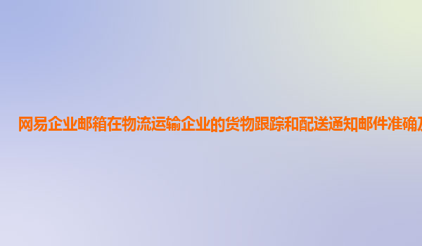 2024-11-22网易企业邮箱在物流运输企业的货物跟踪和配送通知邮件准确及时性分析 随着全球化贸易的发展和电商行业的迅猛增长,物流运输企业在现代商业体系中的作用愈加重要。物流运输不仅需要准确、高效地完成货物配送,还需...