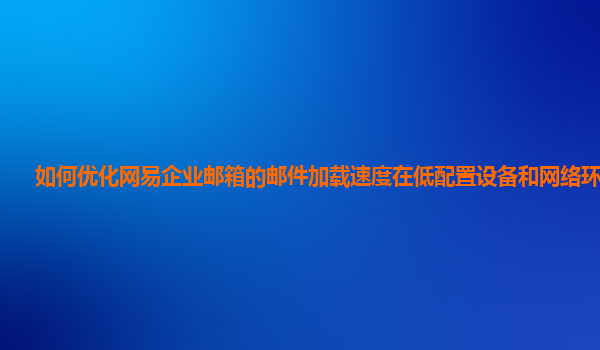2024-11-22如何优化网易企业邮箱的邮件加载速度在低配置设备和网络环境下? 在数字化办公环境中,邮件作为重要的通信工具之一,已经成为企业日常运营中不可或缺的一部分。而对于许多企业来说,网易企业邮箱(NetEaseEnterpri...