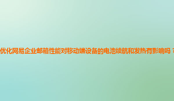 2024-11-22优化网易企业邮箱性能对移动端设备电池续航和发热的影响与优化方法 随着信息化时代的到来,企业内部的沟通和协作日益依赖于电子邮件,而移动端设备的普及使得人们可以随时随地接收和发送邮件。网易企业邮箱作为国内...