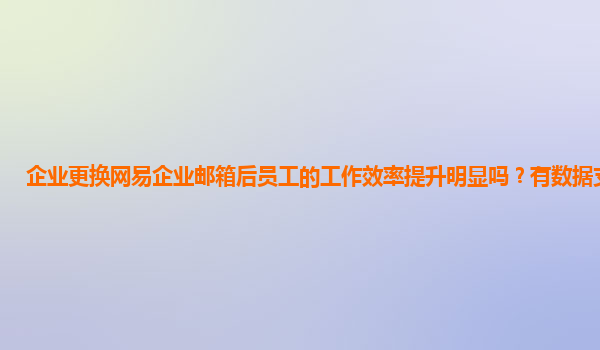 2024-11-20企业更换网易企业邮箱后员工的工作效率提升明显吗?有数据支持吗? 随着数字化时代的到来,企业管理和办公流程的效率越来越依赖于电子邮件等办公工具。邮箱作为企业日常工作中的重要沟通工具,其稳定性、便捷性和功...