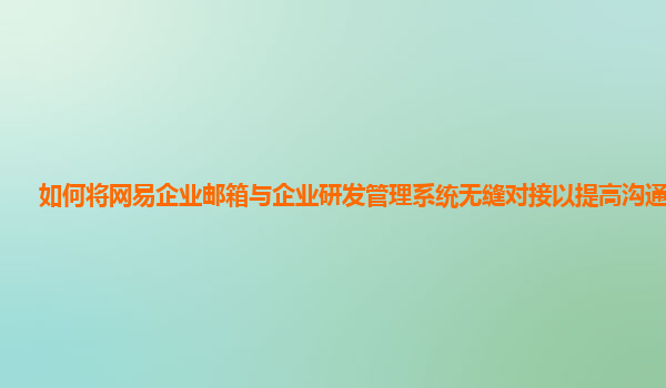 2024-11-19如何将网易企业邮箱与企业研发管理系统无缝对接以提高沟通效率 随着信息技术的快速发展,企业在日常管理中越来越依赖于高效的沟通工具和信息化系统。尤其在研发领域,沟通的流畅性直接影响到项目的进度与质量。而在...