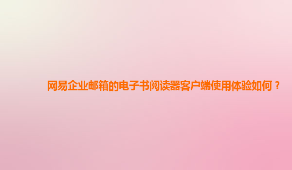 2024-11-19网易企业邮箱电子书阅读器客户端使用体验分析前言:创新与实用性并重的网易企业邮箱网易企业邮箱凭借其稳定的服务质量和丰富的功能,成为了众多企业在日常办公中不可或缺的一部分。而在邮箱服务的基础上,网易更进一...