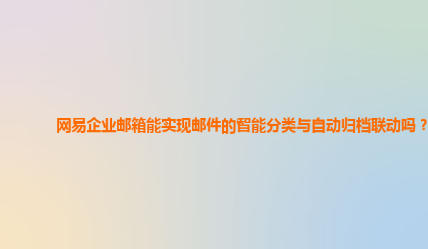 2024-11-18网易企业邮箱能实现邮件的智能分类与自动归档联动吗? 在数字化时代,企业的邮件管理越来越依赖于高效的自动化工具,尤其是对于大量邮件的分类、存档和归档等工作。网易企业邮箱作为一款广泛应用于中小企...