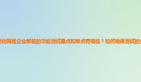 2024-11-18定制化网易企业邮箱的功能测试重点和难点分析 随着企业信息化进程的不断推进,企业邮箱已成为日常工作中不可或缺的沟通工具。网易企业邮箱,作为国内领先的企业级邮件服务提供商,以其稳定性、安全性和丰富的定制化...