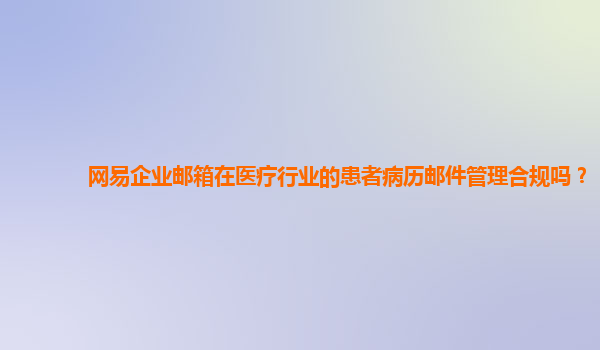 2024-11-17网易企业邮箱在医疗行业的患者病历邮件管理合规性分析 在现代医疗行业,患者病历作为重要的医疗数据,其管理、存储和传输的安全性、隐私性至关重要。医疗机构需要确保患者病历的存储和交流符合国家法律法规、行业标...