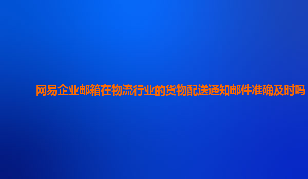 2024-11-17网易企业邮箱在物流行业的货物配送通知邮件准确及时吗? 随着电子商务的快速发展,物流行业的货物配送变得日益复杂且要求精确。企业需要通过高效、准确的方式与客户进行沟通,尤其是在货物配送过程中,通知邮件的及...