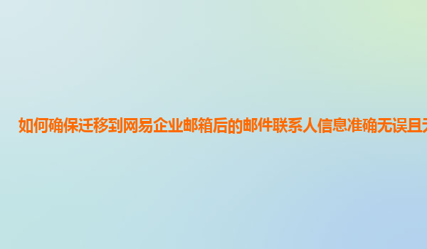 2024-11-16如何确保迁移到网易企业邮箱后的邮件联系人信息准确无误且无重复? 随着企业的快速发展,邮箱作为沟通工具的作用愈加重要。而对于许多企业来说,将邮件系统从原有平台迁移到网易企业邮箱,不仅是提升邮件管理效率的...