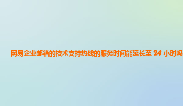 2024-11-16网易企业邮箱技术支持热线是否能延长至24小时? 随着企业信息化的不断发展,电子邮件已成为企业沟通和工作协作中不可或缺的一部分。作为国内领先的互联网企业之一,网易在企业邮箱服务方面积累了丰富的经验。网...