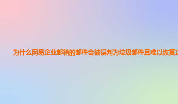 2024-11-16为什么网易企业邮箱的邮件会被误判为垃圾邮件且难以恢复正常? 在企业的日常通讯中,企业邮箱扮演着至关重要的角色。网易企业邮箱以其高效、稳定和安全的特点,已经成为许多企业的首选。然而,最近一些企业用户反映...