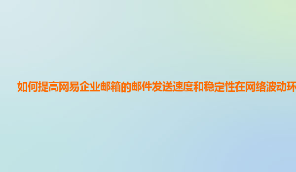 2024-11-16如何提高网易企业邮箱的邮件发送速度和稳定性在网络波动环境下? 随着互联网技术的发展,电子邮件作为企业沟通和信息传递的重要工具,已经成为日常办公不可或缺的一部分。尤其是在网络波动的环境下,如何提高邮...