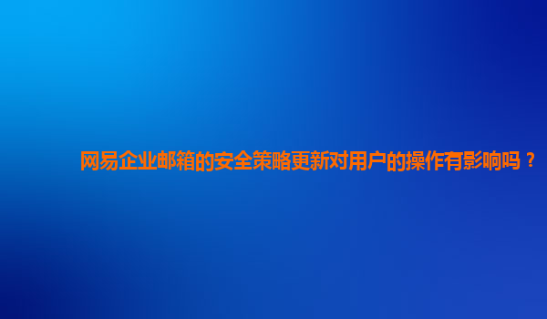 2024-11-15网易企业邮箱安全策略更新对用户操作的影响与优势分析 引言:网易企业邮箱的安全升级背景 随着信息安全问题日益严峻,企业对邮箱系统的安全性要求也越来越高。作为国内领先的互联网公司之一,网易始终将用户数据的...