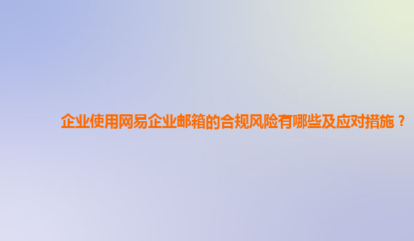 2024-11-15企业使用网易企业邮箱的合规风险及应对措施 随着互联网的发展和信息化进程的加快,企业的邮件系统逐渐成为日常沟通、信息传递和业务处理的重要工具。在众多邮件服务商中,网易企业邮箱因其强大的功能和高安全性,已...
