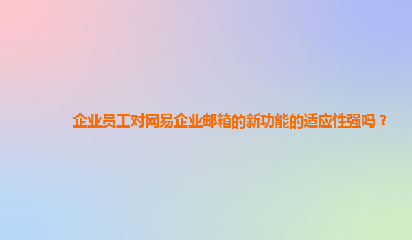 2024-11-15企业员工对网易企业邮箱的新功能的适应性强吗? 随着信息化时代的快速发展,企业对高效、安全、易用的电子邮件系统的需求越来越强烈。网易企业邮箱作为国内领先的企业级邮件服务平台,一直以来在企业邮箱领域占有一...