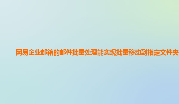 2024-11-13网易企业邮箱的邮件批量处理能实现批量移动到指定文件夹吗? 在日常的企业办公中,邮箱的使用频率非常高,尤其是对于需要处理大量邮件的工作人员来说,邮件管理的效率显得尤为重要。网易企业邮箱作为一款功能全面、...