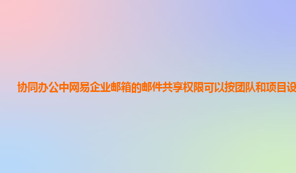 2024-11-12协同办公中网易企业邮箱的邮件共享权限可以按团队和项目设置吗? 在现代企业中,协同办公的效率越来越依赖于信息共享和团队间的沟通。邮件作为一种常见的沟通工具,已经不仅仅局限于个人信息传递,更多地被用作团队...