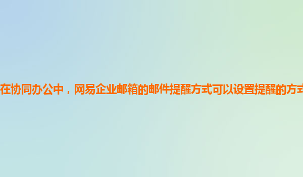 2024-11-12网易企业邮箱在协同办公中的邮件提醒方式设置 在现代企业的日常运营中,协同办公的效率和信息流通的及时性直接关系到团队的生产力。而邮件作为企业沟通的重要工具,其提醒方式的设置无疑是提升工作效率的一项关键措...