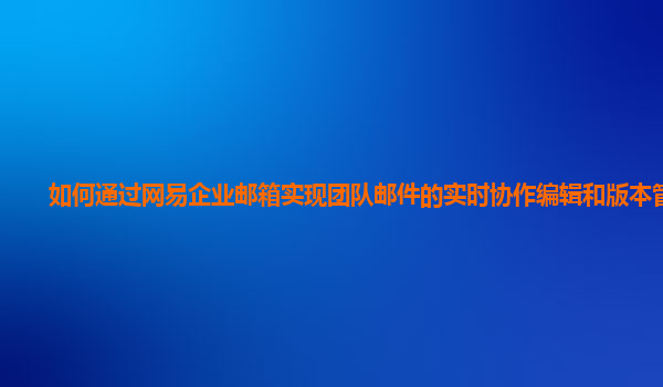 2024-11-12如何通过网易企业邮箱实现团队邮件的实时协作编辑和版本管理 随着企业的数字化转型,团队协作的效率和信息的流畅传递变得越来越重要。在日常的办公工作中,电子邮件作为一种主要的沟通工具,已经不仅仅局限于单纯的...