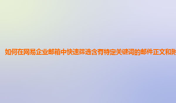 2024-11-12如何在网易企业邮箱中快速筛选含有特定关键词的邮件正文和附件内容 随着互联网技术的不断发展,电子邮件已经成为企业日常办公中不可或缺的重要工具。尤其是在工作中,企业邮箱不仅仅是信息交流的渠道,还承载着大量...