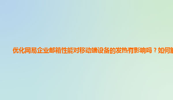 2024-11-12优化网易企业邮箱性能对移动端设备的发热有影响吗?如何解决? 随着智能手机和移动设备的普及,企业邮箱逐渐成为职场人士日常工作的重要工具。网易企业邮箱作为国内领先的企业邮箱解决方案,其强大的功能和高效的服...