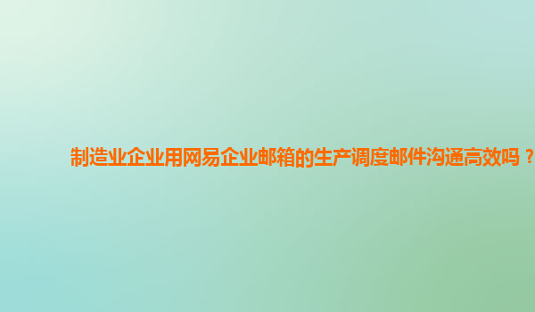 2024-11-11制造业企业用网易企业邮箱的生产调度邮件沟通高效吗? 在当今信息化快速发展的时代,企业的生产调度和日常运营管理对沟通效率的要求越来越高,尤其是制造业企业,往往涉及到大量的生产任务调度、物料采购、设备维护...