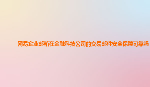 2024-11-11网易企业邮箱在金融科技公司的交易邮件安全保障可靠吗? 在当今金融科技行业,信息安全已经成为一个亟待解决的重大问题。随着各类交易、资金流动以及敏感信息的频繁交换,如何保障电子邮件的安全性,成为了企业特别...
