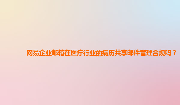 网易企业邮箱在医疗行业的病历共享邮件管理合规性分析 随着信息化时代的到来,电子邮件已经成为了现代企业和组织日常工作中不可或缺的沟通工具。在医疗行业中,随着病历管理的数字化,医疗数据的共享和传递也越来越...