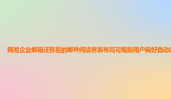 2024-11-11网易企业邮箱迁移后的邮件阅读界面布局可根据用户偏好自动调整吗? 在现代办公中,电子邮件是沟通和协作的核心工具之一。对于企业用户来说,选择一个高效、易用、灵活的企业邮箱系统至关重要。网易企业邮箱凭借其稳...
