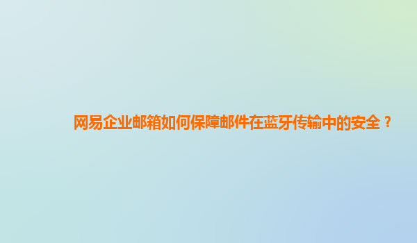 2024-11-10网易企业邮箱如何保障邮件在蓝牙传输中的安全 随着企业信息化程度的不断提升,电子邮件作为企业沟通和协作的主要工具之一,已经成为现代企业中不可或缺的部分。然而,随着移动互联网技术的普及,电子邮件的安全性问...