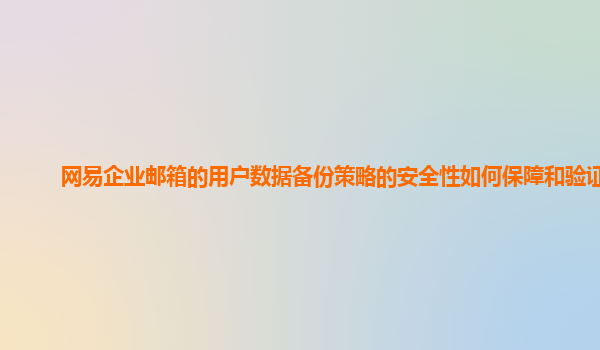 2024-11-10网易企业邮箱的用户数据备份策略安全性保障与验证 随着信息化时代的到来,企业对于数据安全的关注日益增强。尤其是邮件系统作为企业内部沟通的重要工具,其数据的安全性直接关系到企业的正常运营。网易企业邮...