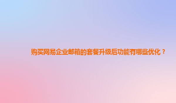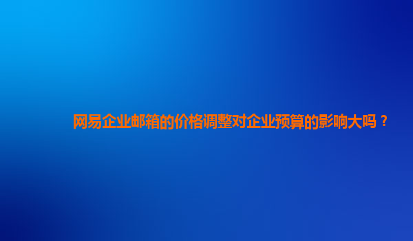 2024-11-10网易企业邮箱价格调整对企业预算的影响大吗? 随着信息化时代的到来,企业对于通讯工具的依赖越来越大,尤其是电子邮件作为一种高效、便捷的办公方式,已成为企业日常运营的必备工具。网易企业邮箱,作为国内领先的...