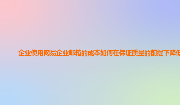2024-11-10如何在保证质量的前提下降低企业使用网易企业邮箱的成本 随着企业的数字化转型,企业邮箱已经成为公司日常沟通与信息管理的重要工具。网易企业邮箱作为目前市场上最受欢迎的邮箱解决方案之一,凭借其稳定性、安全性...