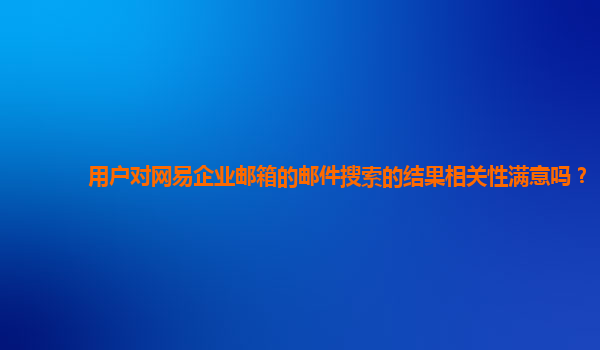 2024-11-09用户对网易企业邮箱的邮件搜索结果相关性满意吗? 随着信息化时代的到来,企业的日常运营离不开高效的邮箱服务。尤其是对于需要频繁处理大量邮件的企业用户来说,邮箱的搜索功能成为了提高工作效率的重要工具。网易...