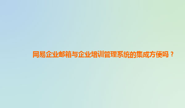 2024-11-09网易企业邮箱与企业培训管理系统的集成:提升企业管理效率 一、网易企业邮箱简介 网易企业邮箱作为一款专业的企业级邮件服务,凭借其强大的功能和稳定的服务,已成为众多企业首选的邮箱平台。网易企业邮箱提供...