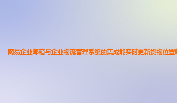 2024-11-09网易企业邮箱与企业物流管理系统集成:实时更新货物位置邮件 随着信息技术的飞速发展,企业对物流管理的需求也日益增强,尤其是在货物追踪和实时更新方面。网易企业邮箱作为一款高效、安全、稳定的企业级通讯工具,...