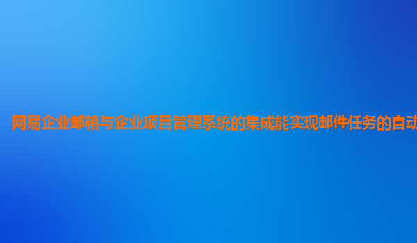 2024-11-09网易企业邮箱与企业项目管理系统的集成能实现邮件任务的自动跟踪吗? 随着信息技术的迅速发展,企业在管理上逐渐转向智能化、自动化,以提升工作效率和团队协作。企业邮箱作为企业内部沟通和信息传递的重要工具...
