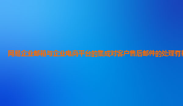 2024-11-09网易企业邮箱与企业电商平台的集成对客户售后邮件的处理有帮助吗? 随着电商行业的蓬勃发展,客户售后服务已经成为商家维护客户关系和提升品牌形象的重要环节。针对售后服务过程中大量的客户邮件,如何提高处理效率...