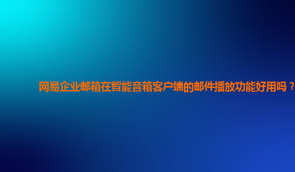 2024-11-09网易企业邮箱在智能音箱客户端的邮件播放功能好用吗? 随着智能家居设备的普及,智能音箱逐渐成为日常生活中的重要组成部分。尤其是在工作环境中,如何提高工作效率、方便信息获取成为大家关注的焦点。网...