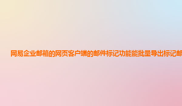 2024-11-09网易企业邮箱:高效邮件管理与批量导出标记邮件功能的完美结合 随着信息化时代的快速发展,电子邮件已经成为企业沟通和业务处理的重要工具。为了提高工作效率,许多企业都开始选择使用企业邮箱服务,而网易企...