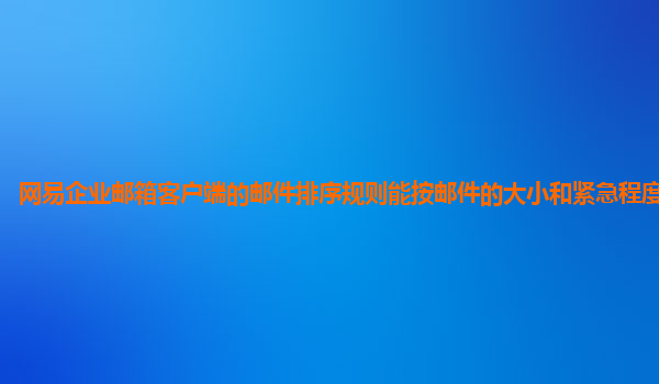 网易企业邮箱客户端的邮件排序规则分析:能否按邮件大小和紧急程度混合排序? 在现代企业中,电子邮件已经成为了沟通和协作的重要工具。企业邮箱作为员工工作中不可或缺的一部分,除了能够提供基本的邮件收发功能外...