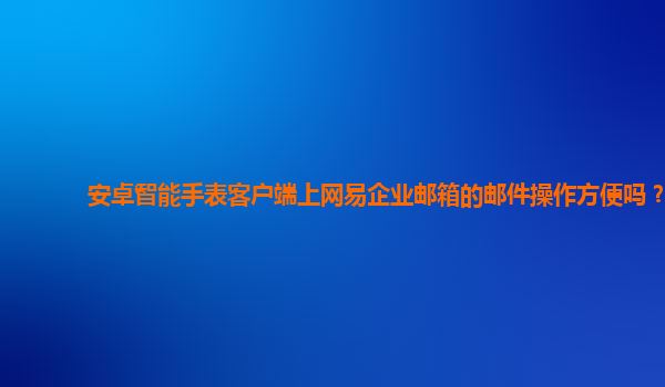 2024-11-09安卓智能手表客户端上网易企业邮箱的邮件操作是否方便? 随着智能设备的普及,越来越多的用户开始依赖于智能手表来处理日常事务。在这一背景下,网易企业邮箱作为一款专业的企业邮箱服务,如何在安卓智能手...