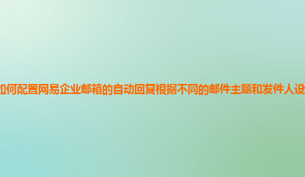 2024-11-08如何配置网易企业邮箱的自动回复,根据不同的邮件主题和发件人设置不同内容 随着信息时代的到来,电子邮件已经成为现代商业沟通中不可或缺的一部分。企业使用邮箱进行沟通,不仅方便快捷,而且可以帮助提高工作效率...